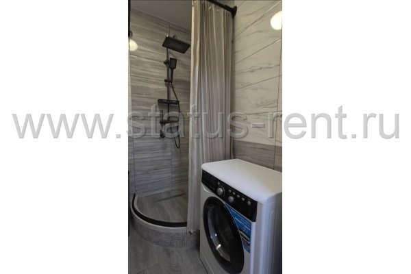В ванной комнате: душевая, унитаз с инсталляцией, умывальник, зеркало.