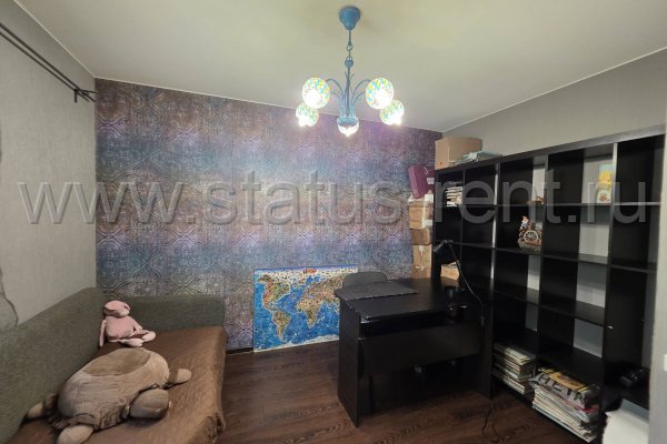 Кабинет 11м2: стол, стеллажи, шкаф, кровать для отдыха.