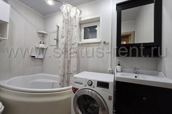 Санузел: комфортная большая ванна, умывальник с ящиками для хранения и с зеркалом. Стиральная машина автомат. Бойлер.