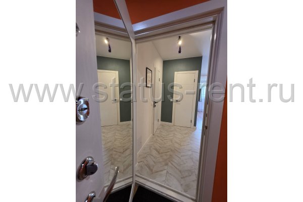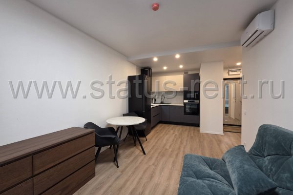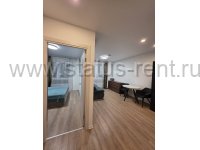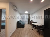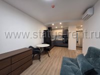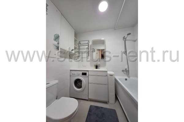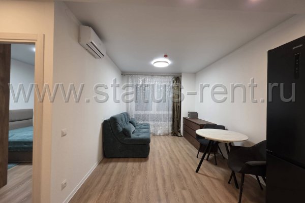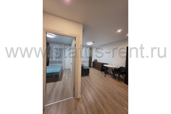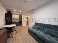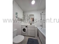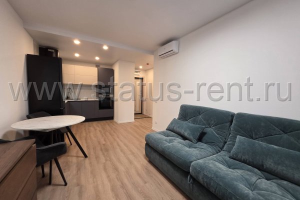 В квартире сделан новый евроремонт. Квартира полностью укомплектована мебелью и техникой. Комната - изолирована от кухни. В спальне: двуспальная кровать, шкаф-купе. На кухне: встроенный кухонный гарнитур с техникой (встроенная варочная панель из стеклокерамики, встроенные духовой шкаф, микроволновая печь и посудомоечная машина, вытяжка), полноценный холодильник, установлены фильтры системы очистки воды, кондиционер. Так же на кухне установлен большой раскладной диван, комод, стол со стульями. В санузле: стиральная машина, ванна, электрический полотенцесушитель. В коридоре: шкаф с системой хранения.