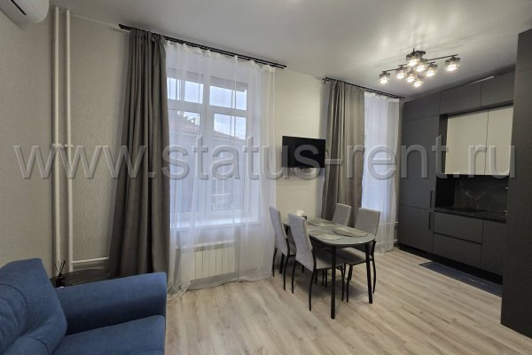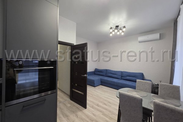Новый дом, нового поколения. Стильная видовая квартира с ремонтом и планировкой по типу евродвушка с современной мебелью и бытовой техникой. Просторная кухня -гостиная 18м2: встроенный кухонный гарнитур, вытяжка, встроенная варочная панель стеклокерамика, встроенный духовой шкаф, холодильник, встроенная СВЧ, большой обеденный стол, стулья. Система очистки питьевой воды. ЖК ТВ, Угловой диван с подушками для комфортного отдыха. Кондиционер.