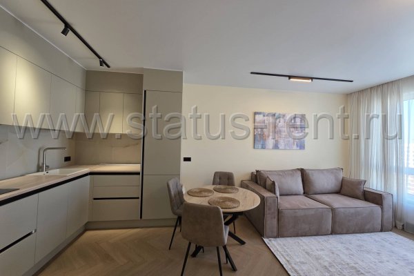 Предлагается вашему вниманию просторная евродвушка в ЖК "Кит". Общая площадь 40м2. Квартира после свежего ремонта. Кухня-гостиная: зона кухни: встроенный кухонный гарнитур под единой столешницей, встроенная варочная панель стеклокерамика, вытяжка, встроенный духовой шкаф, СВЧ. Посудомоечная машина. Встроенный холодильник. Стол обеденный (круглый), стулья.