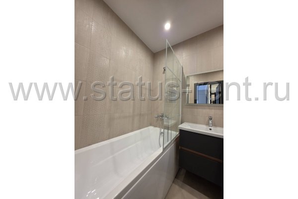 СУС: кафель, тёплые полы, ванна, унитаз с инсталляцией, зеркало, умывальник с тумбой для хранения, шкаф с полками. Стиральная машина автомат. Гигиенический душ.