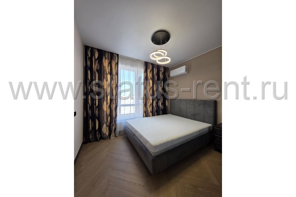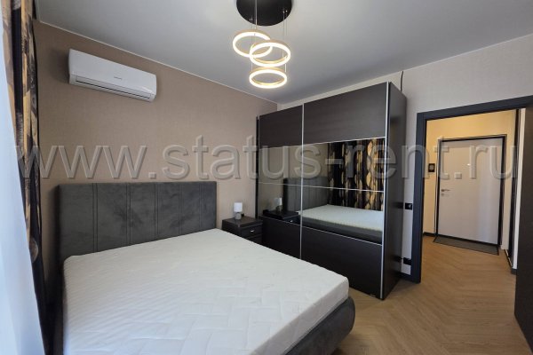 Спальня: большая кровать с ящиком для хранения, матрас, большой вместительный шкаф купе с зеркалом. Кондиционер.