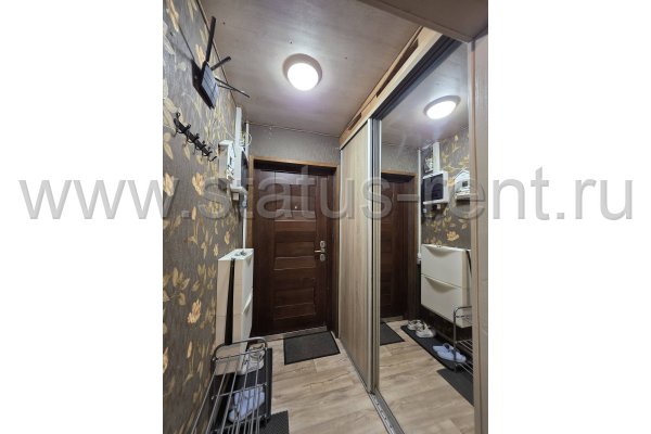 1 этаж: Прихожая: большой шкаф купе с зеркалом, обувница, вешалка для верхней одежды.