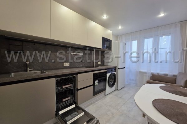 Квартира сдается с новым евроремонтом, полностью укомплектованная мебелью и техникой. В квартире имеется отдельная гардеробная комната с системой хранения.