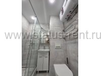 В санузле построена душевая кабина. Установлено зеркало со шкафом для хранения, раковина с тумбой, подвесной унитаз с инсталяцией, гигиенический душ, бойлер (сезонное отключение горячей воды вас не коснётся).