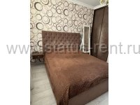 Спальня: двуспальная кровать с подъёмные механизмом и ящиком для хранения, матрас. Вместимый шкаф купе.